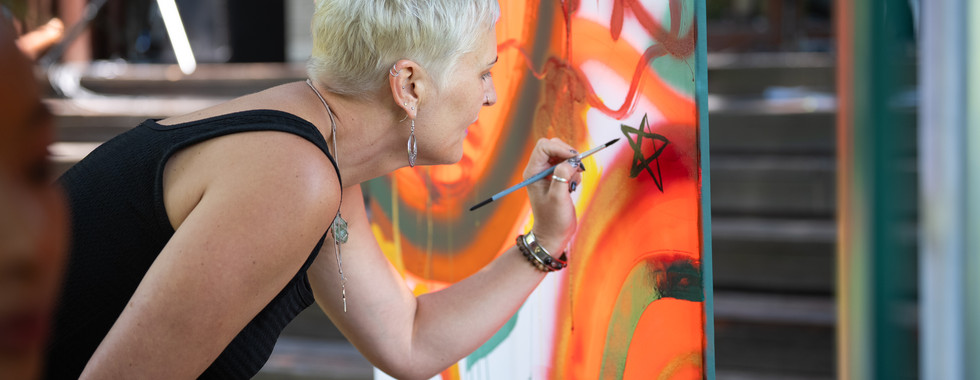Bright pops of colour and carefully considered styling created an inviting setting, while a live artist added a unique interactive element, inviting guests to be part of the creative process through bespoke abstract art commissions. With sunshine overhead, lawn-side socialising and handcrafted mocktails in hand, the atmosphere felt relaxed, vibrant, and effortlessly memorable.